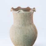Vaso de grande presença, com borda ondulada e textura marcada. Evoca o movimento da argila nas mãos e o diálogo entre força e delicadeza da cerâmica Kiriri.