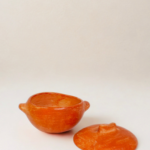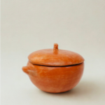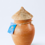 Pote com tampa cônica inspirado nas casas e abrigos tradicionais.