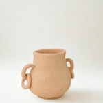 Cerâmica de corpo amplo com duas alças laterais, evocando a força do transporte e da partilha. Uma peça que carrega história, uso coletivo e memória ancestral.